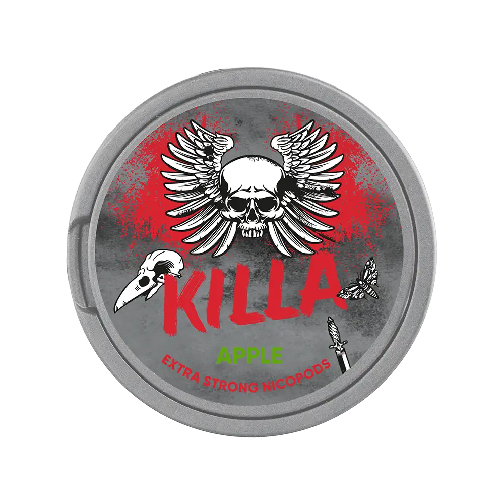 Killa Apple nicotine pouches are a smoke-free alternative to cigarettes and vaping. Packed with crispy apple flavouring, these tobacco-free pouches rapidly satisfy nicotine cravings thanks to their extra strong nicotine strength of 13.2mg per pouch.